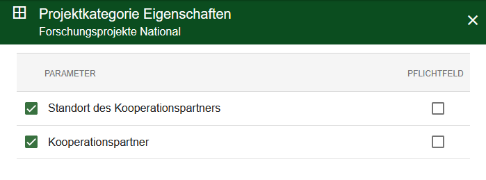 Analog zu den Eigenschaften in den Publikationstyp können Sie nun jeder Projektkategorie zusätzliche Eigenschaften hinzufügen.